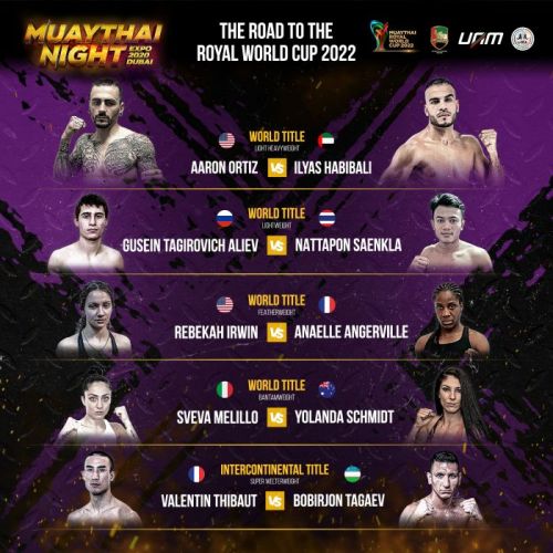 This world-class event will include 12 fights featuring 20 fighters from 15 different International countries; with 5 Title fights competing on the grounds of Expo Dubai.